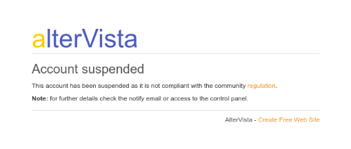As you can see alterVista are one step ahead and has already closed this account down! Great to see that this phishing vector has already been terminated. Great job alterVista!